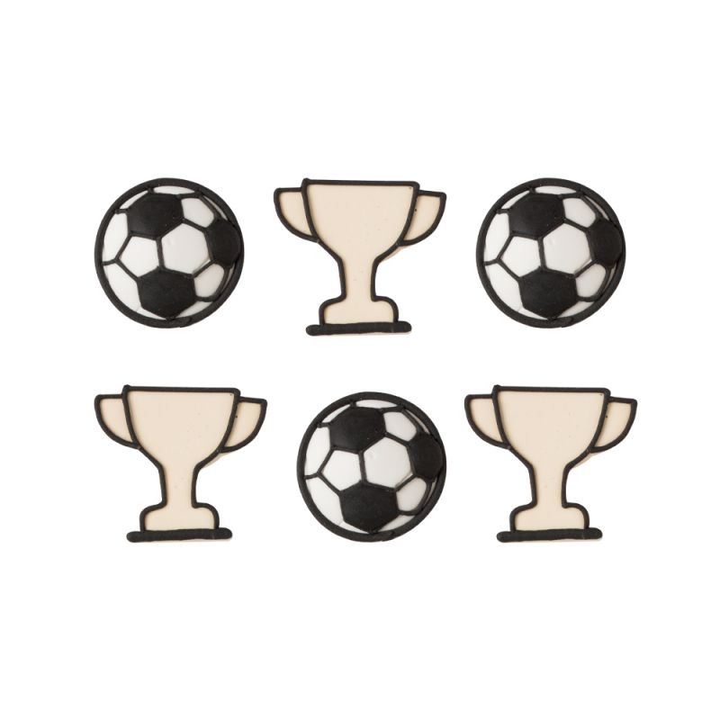 Bereiten Sie leckere Cupcakes für einen Snack mit Freunden zu und dekorieren Sie sie einfach und leicht mit diesen Süßigkeiten mit Fußballmotiv. Wenn Sie Ihre Kreationen mit Fußball-Backförmchen backen, erhalten sie einen noch größeren thematischen Touch. Verwöhnen Sie Ihren Sohn und seine Freunde mit einem festlichen, kulinarischen Erlebnis, das sie nie vergessen werden. Abmessungen: ca. 3 cm. Glutenfrei. An einem kühlen, trockenen Ort, fern von Licht- und Wärmequellen aufbewahren. Vorsichtig handhaben.