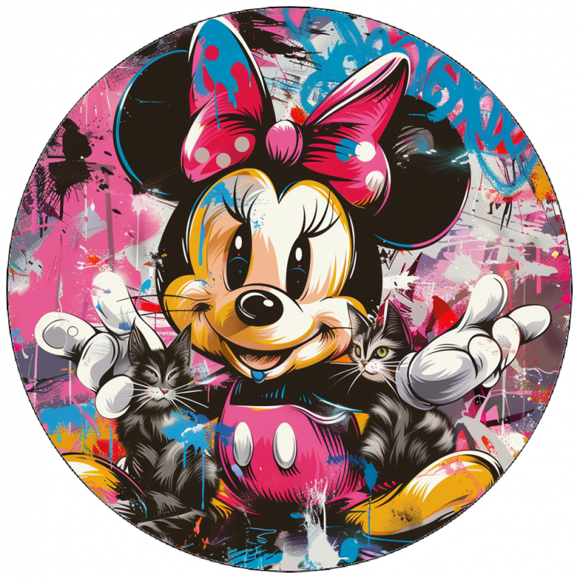 Essbares Papier Minnie und Katzen rosa Hintergrund 19,5 cm