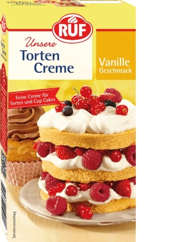 Sahnetorten sind einfach göttlich, denn sie sehen toll aus und schmecken genauso gut, ob mit Obst oder als reichhaltigere Variante mit Schokolade.Mit dieser Vanille-Sahne-Tortenfüllung ist eine Sahnetorte ganz schnell und kinderleicht zubereitet. Einfach das Sahnepulver mit kalter Milch verrühren und zu einer glatten Masse verarbeiten. Diese Tortencreme ist noch vielseitiger. Sie kann auch für die klassische Buttercreme zum Verzieren von Torten, Kleingebäck und Kuchen verwendet werden. Für die Zubereitung benötigen Sie 250 ml kalte Milch. Gießen Sie 250 ml kalte Milch in eine Schüssel.Fügen Sie den Inhalt des Beutels hinzu und verrühren Sie ihn mit einem elektrischen Handrührgerät (Schneebesen) zunächst auf niedriger, dann auf höchster Stufe für 2-3 Minuten.
