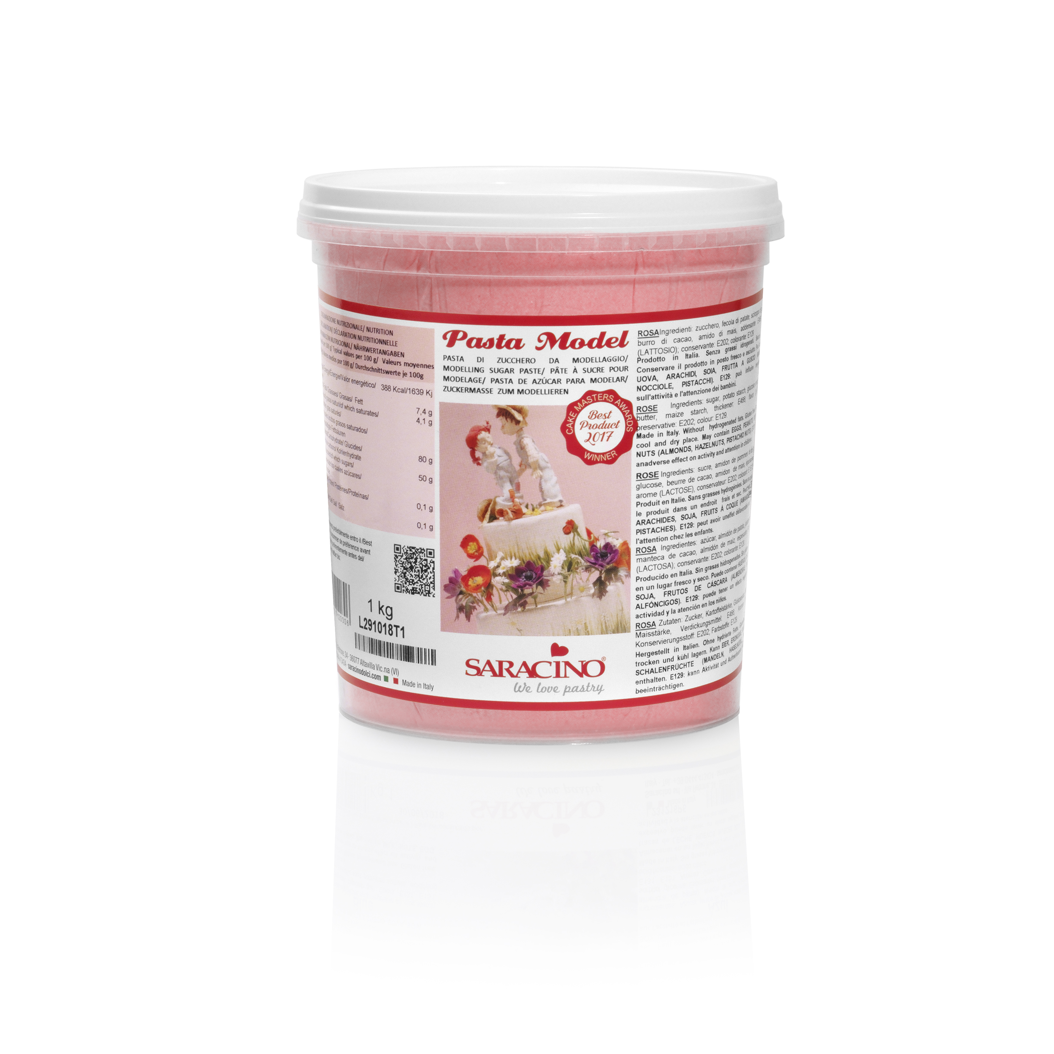Die Zuckerpaste Saracino ist für das Modellieren von Figuren, Blumen und Dekorationen aller Art bestimmt. Da es sich um eine Modelliermasse handelt, halten die Produkte ihre Form perfekt und fast sofort. Die Masse trocknet schneller als gewöhnliche Zuckermasse. Saracino ist daher schneller zu verarbeiten. Diese Modellierzuckerpaste mag in der Verpackung steif erscheinen, sie fühlt sich sogar härter an. Wenn Sie sie jedoch aus der Verpackung nehmen und sie in den Händen reiben, wird sie in wenigen Sekunden weich und geschmeidig. Wenn Sie nicht mit der Masse arbeiten, verschließen Sie sie in einem luftdichten Behälter oder wickeln Sie sie in Frischhaltefolie ein. So verpackt ist die Masse mehrere Wochen lang haltbar. Achten Sie beim Verarbeiten der Masse darauf, dass Ihre Hände trocken sind, denn wenn die Zuckermasse mit Feuchtigkeit in Berührung kommt, kann sie anfangen zu tropfen. Die Saracino-Masse wird in Italien hergestellt.