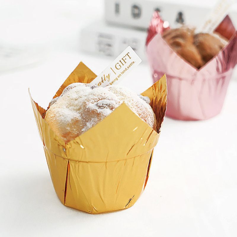 Goldene Tulpen-Muffinförmchen. Abmessungen 50 x 80 mm. 100 Stück.