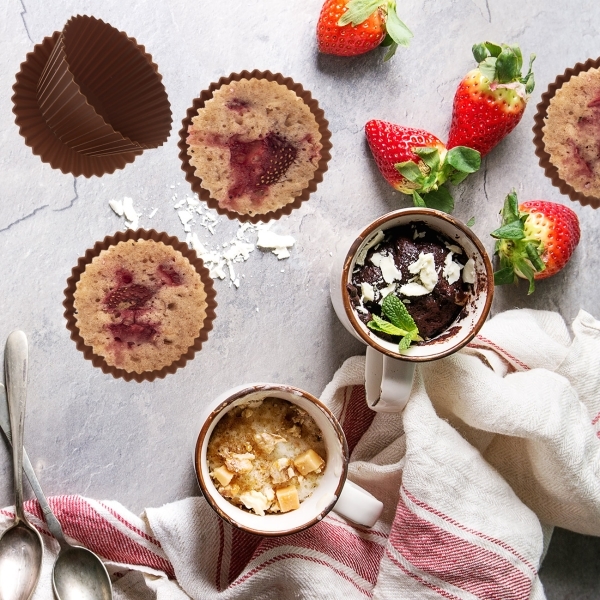 Die hochwertigen und praktischen braunen Silikonformen erleichtern das Backen. Mit ihnen lassen sich auch Obstkuchen, Soufflés oder erfrischende Sorbets herstellen. Die Formen sind aus haltbarem, hitzebeständigem Silikon gefertigt, das für den Kontakt mit Lebensmitteln geeignet ist.
