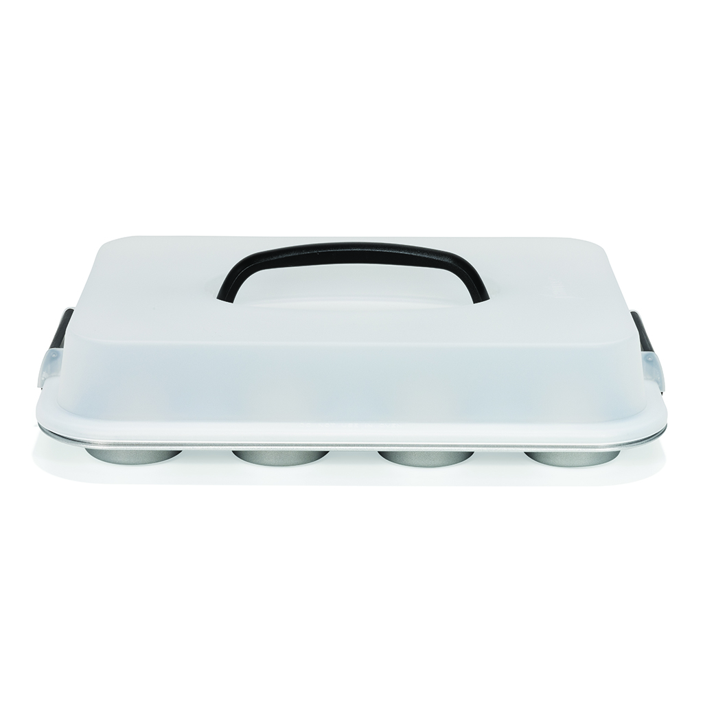 Backen Sie süße Muffins, Cupcakes und Brownies in dieser praktischen Backform von Patisse. Die Muffinform verfügt über einen Deckel, in dem Sie Ihre Muffins oder Cupcakes aufbewahren können. Sie hat eine Antihaftbeschichtung. Die Backform kann über einen längeren Zeitraum auf bis zu 230°C und über einen kurzen Zeitraum auf bis zu 250°C erhitzt werden. Mit Deckel zum Transportieren von Muffins und Cupcakes. Größe: 35 cm. Nicht spülmaschinenfest.