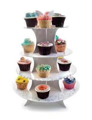 Ein Stand, der Ihre Süßwaren-Köstlichkeiten zur Geltung bringt. Die Präsentation Ihrer Leckereien ist fast so wichtig wie ihr Geschmack. Also präsentieren Sie Ihre Muffins und Cupcakes richtig. Der vierstöckige Ständer mit zarter Dekoration ist perfekt für diesen Anlass.