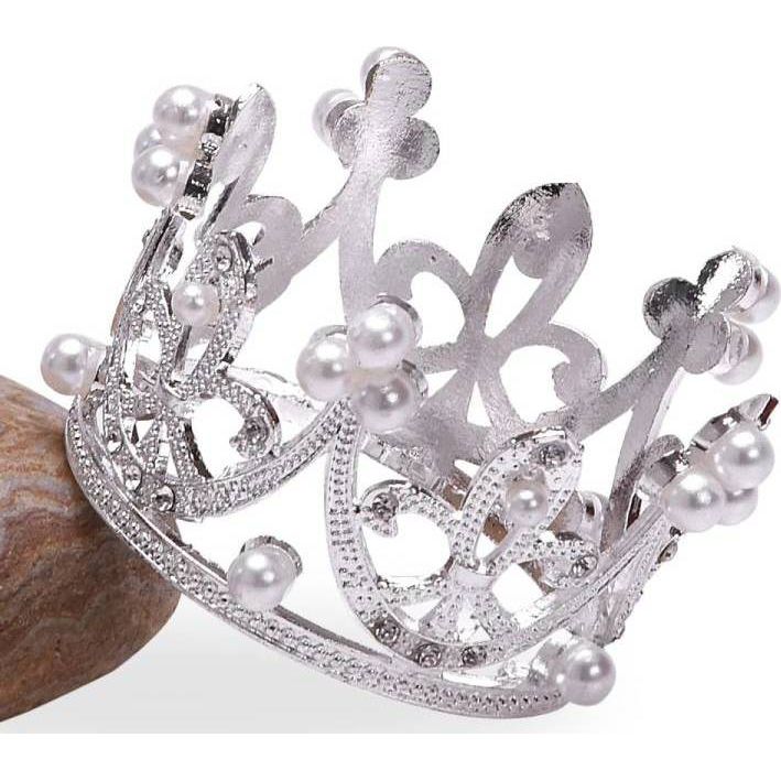Nicht essbare Dekoration Metall Krone Silber klein mit weißen Perlen 2