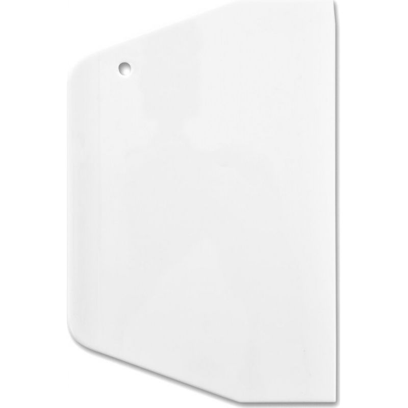 Der viereckige, flache Kunststoffspachtel, wenn Sie eine Teigkarte wünschen, wird bei der Arbeit mit Teig auf einem Backblech verwendet, vor allem bei Gußteigen, bei denen Sie eine gleichmäßig hohe Oberfläche benötigen. Er eignet sich auch zum Verarbeiten von Cremes, Pudding, Mascarpone oder Marmelade auf dem Darm oder zum Glätten des Belags.
