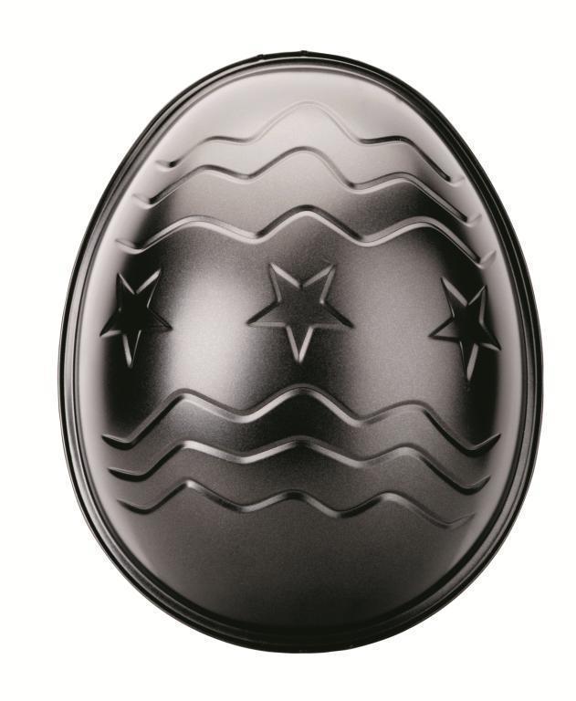 Stahlformen vertragen hohe Temperaturen gut, so dass diese Form natürlich auch für den Einsatz in einem herkömmlichen Backofen jeder Art geeignet ist. Mit ihr können Sie ein wunderschönes Osterei mit den Maßen 26 x 21 cm formen, die Tiefe der Form beträgt ganze 8,3 cm. Mit dem richtigen, fluffigen Teig wird das Ergebnis wunderschön plastisch, und dieses überdimensionale und geschmacksintensive Ei wird über alle Bommeln, Hasen und Weihnachtslieder zu Ostern herrschen. Zum Verzieren eignen sich klassische Mischungen aus geschlagenem Eiweiß und Zucker ebenso wie fröhliche Lebensmittelfarben, und die Kinder freuen sich bestimmt über ein leckeres Schokoladen- oder anderes Topping.