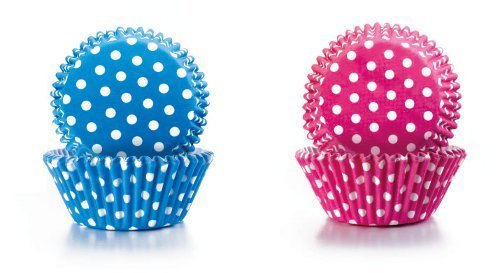 Blaue und rosafarbene Körbe mit verspielten Tupfen passen zu Ihren Cupcakes. Sie können die Cupcakes mit Teig füllen und einfach backen oder sie in Silikonbackförmchen setzen, mit Teig füllen und dann backen. Sie können sie auch für ungebackene Leckereien verwenden.
