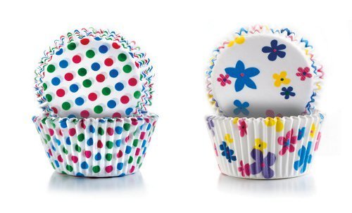 Süßwarenkörbchen im praktischen 2 x 50er Pack - buntes Dekor aus Blumen und Punkten. Das Papier ist fettdicht und kann auch für Muffins verwendet werden.