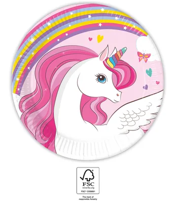 Papier-Pappteller Einhorn 19,5 cm 8 Stück
