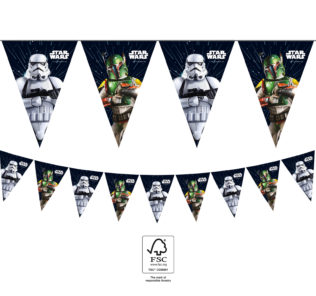 Geburtstagsgirlande mit Star Wars-Aufdruck. Alles in schönen Pastellfarben. Es ist eine perfekte Dekoration für eine Geburtstagsfeier oder Themenparty.