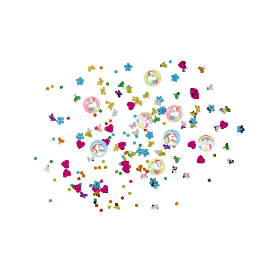 Das bunte Einhorn-Konfetti schmückt jede Party. 34 g pro Packung.