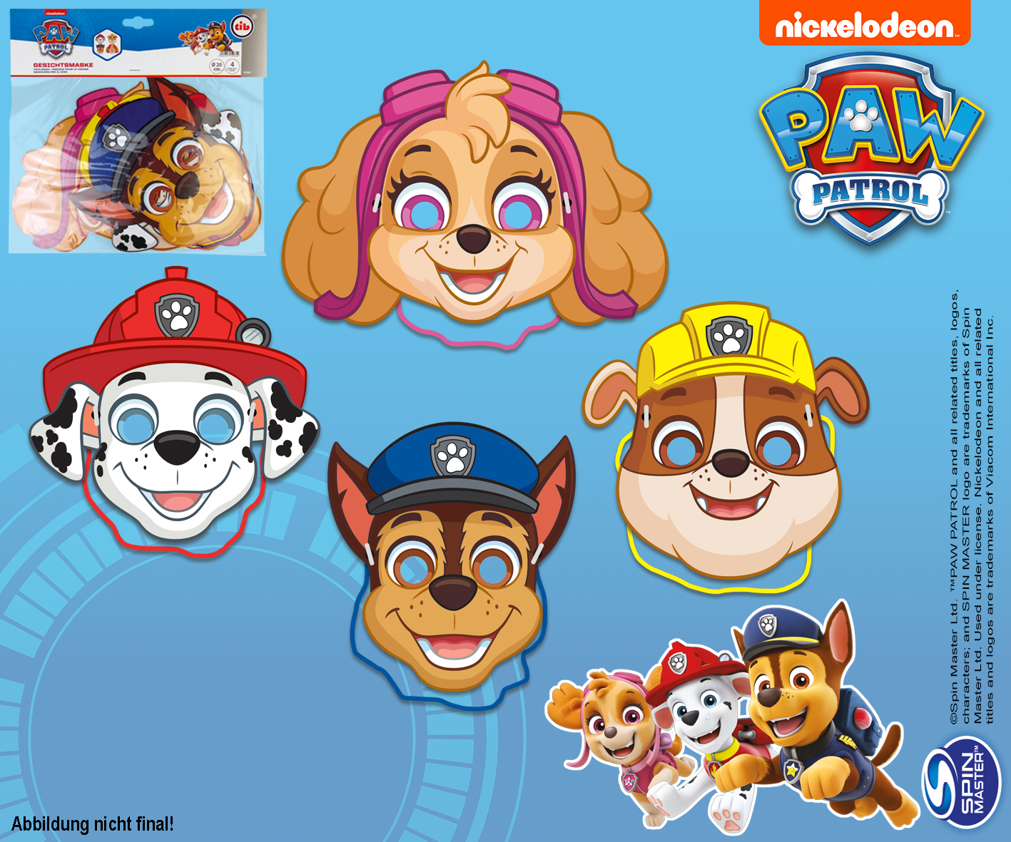 Papiermasken werden aus Papier hergestellt. Lebendige und leuchtende Farben sind dauerhaft. Die Masken mit den Motiven der Mitglieder der Paw Patrol werden am Rücken mit einem Gummiband befestigt, sie halten gut und fallen nicht vom Gesicht ab.