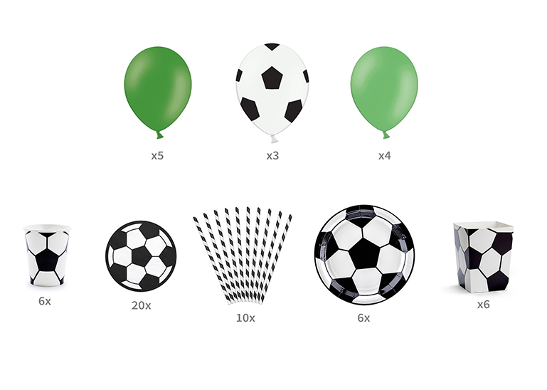 In diesem Set finden Sie alles, was Sie brauchen, um eine Party mit einem Fußball-Thema zu organisieren. 60 Teile im Paket.