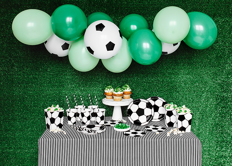 Ein Dekorationsset im Fußballdesign ist der einfachste und schnellste Weg, eine Party zu veranstalten. Dieses fertige Set enthält fast immer die notwendigsten Artikel und Dekorationen, um eine einzigartige Atmosphäre zu schaffen. Das Set enthält: Pappbecher - 6 Stück Pappteller - 6 Stück Papierservietten - 20 Stück Papierstrohhalme - 10 Stück Popcornschachteln - 6 Stück Latexballonkugeln - 3 Stück Latexballons pastellgrün - 4 Stück Latexballons smaragdgrün - 5 Stück.