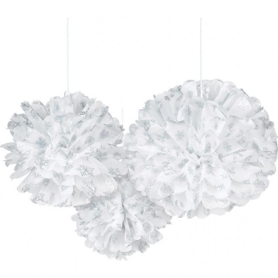Partydekoration zum Aufhängen 3Stk Kugeln weiß - Schneeflocken