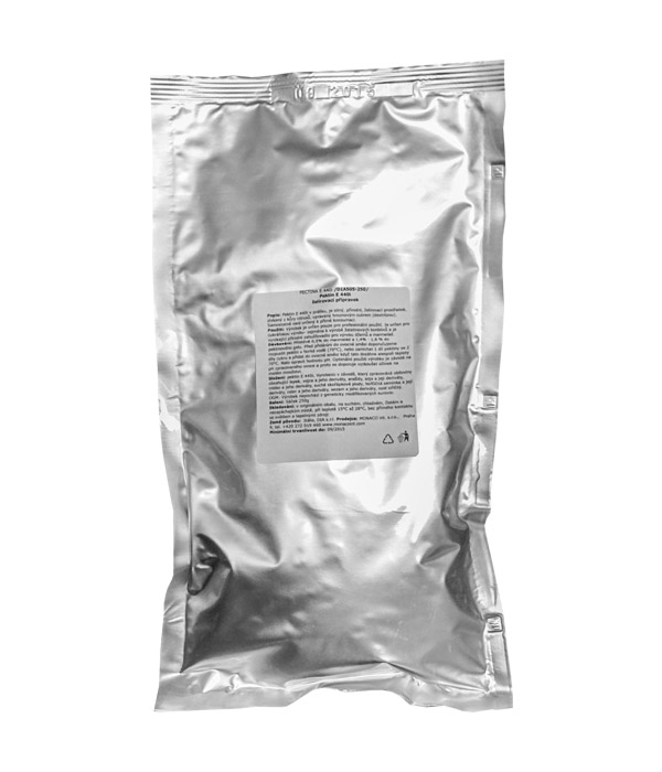 Pektin E440i ist ein sehr starkes Geliermittel, das natürlicher Natur ist. Es wird aus der Schale von Zitrusfrüchten extrahiert und mit Traubenzucker behandelt. Es ist nicht für den direkten Verzehr bestimmt. Dieses Produkt wird ausschließlich professionell in der Süßwarenherstellung für die Zubereitung von Marmeladen, Gelatinebonbons verwendet. Dosierung: ca. 0,5% für Marmeladen und 1,4% - 1,6% für Pektingel. Es empfiehlt sich, das Pektin vor der Zugabe in die Fruchtmischung in heißem Wasser (70°C) aufzulösen oder 1 Teil Pektin mit 2 Teilen Zucker zu mischen und der mindestens 70°C warmen Fruchtmischung hinzuzufügen. Die optimale Verwendung des Produkts hängt vom pH-Wert des verarbeiteten Obstes ab, daher empfiehlt es sich, die Wirkung an kleinen Mengen zu testen.