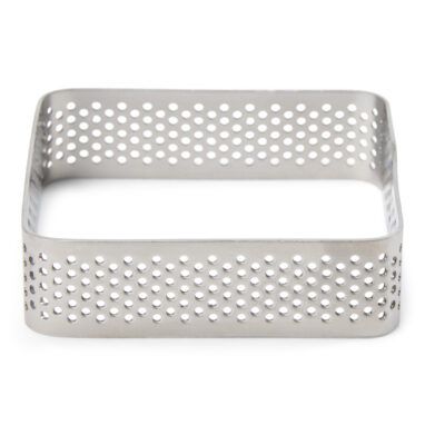 Dieser Edelstahtring in eckiger Form ist ideal zur Zubereitung süßer oder salziger Kuchen und Torten. Diese hohlraumlose Form wird auf dem Teller oder auf dem Backblech verwendet. Ausgabe und Präsentation werden vollkommen sein. Die Pflege ist einfach, da sie spülmaschinenfest ist. Die Ränder sind gerollt. Wird von Fachleuten verwendet. Höhe - 2 cm