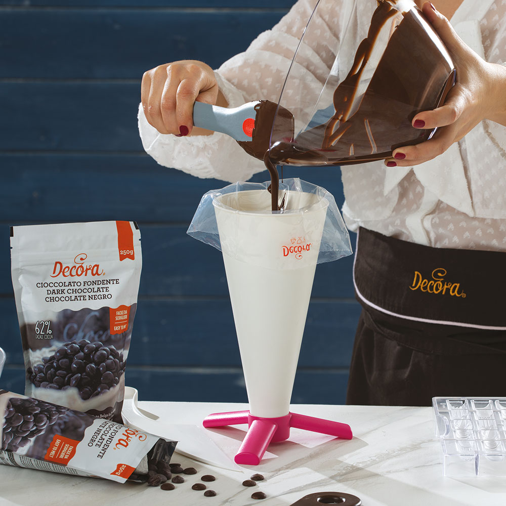Už se nemusíte trápit s tím, že při každém odložení cukrářského sáčku si umažete stůl či pracovní plochu. Tento praktický stojánek na cukrářský sáček se stane vaší pravou rukou. Velmi praktický nástroj, který vám umožní podepřít sáček během použití, také usnadňuje plnění. Vyroben z plastu, skládá se ze dvou odnímatelných dílů, které tak mnohem lépe umyjete. Rozměry: 10,3 x 22 cm.