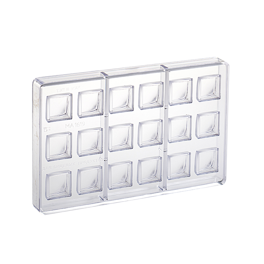 Polycarbonatform für die Herstellung von Pralinenplatten.