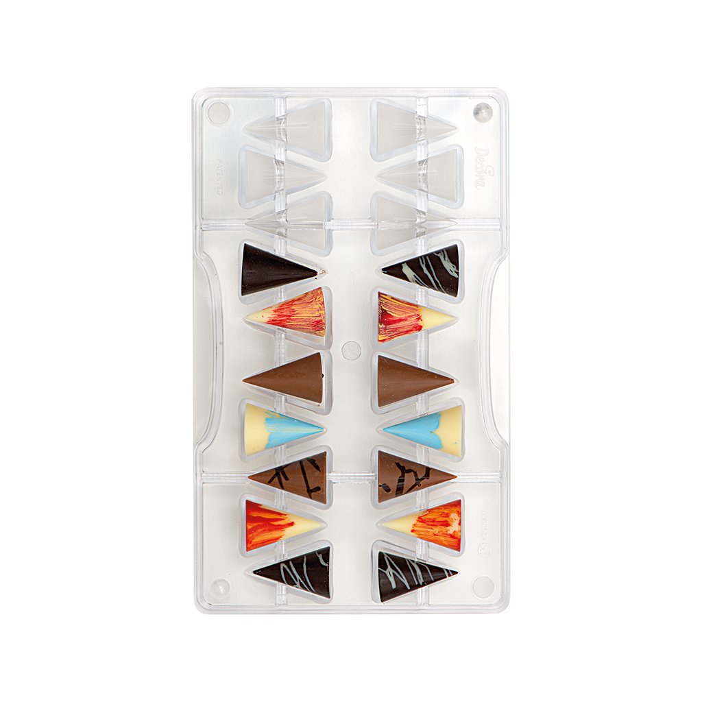 Professionelle Formen aus Polycarbonat, einem Material, das Ihnen glänzende und perfekte Schokoladen ermöglicht. Patentierte Modelle zur Herstellung von Schokoladen mit originellen Formen. Nicht geeignet zum Backen. Abmessung der Form: ca. 20,5 x 12 x 2,2 cm