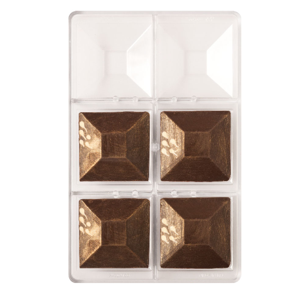 Professionelle Form aus transparentem Polycarbonat mit 6 Vertiefungen für 6 kleine runde Teller, die mit Sahne oder Eis gefüllt und nach dem Verzehr des Inhalts genossen werden können. Hochwertige Schokoladenformen Made in Italy, zertifiziert für den Kontakt mit Lebensmitteln, ideal für die Schaffung von originellen Details in der Kunst des Cake Design. Die Form aus Polycarbonat ermöglicht es Ihnen, professionelle Schokoladenformen mit großer Leichtigkeit zu kreieren, dank des ergonomischen Griffs, mit dem Sie die Form mit einer Hand halten können. Schokoladenform aus Polycarbonat mit 6 Kavitäten für 6 quadratische Tafeln. Abmessungen des Hohlraums: 7,5 7,5 x H 1,5 cm. Außenmaße der Form: 27,5 x 17,5 x 2,2 cm. Ideal für die Herstellung von 6 kleinen quadratischen Tellern mit einem Gewicht von jeweils ca. 48,8 g. Die Formen sind temperaturbeständig von -10 °C bis + 50 °C. GEBRAUCHSANLEITUNG: Die geschmolzene Schokolade in die Polycarbonatform gießen, den Überschuss entfernen und fest werden lassen. Von Hand waschen und mit einem weichen Tuch abtrocknen.