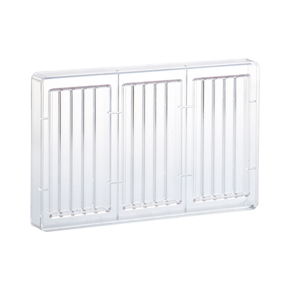 Polykarbonatformen für Schokoladentafeln mit geometrischen und einfachen Linien, für die Interpretation der aktuellen Trends. Hergestellt aus Polycarbonat, um ein einfaches Entfernen der fertigen Schokolade zu ermöglichen. Produktgröße: 275 x 175 mm Größe der Tafel: 138 x 68 h 11 mm Fassungsvermögen des Objekts: 3 Stück Gewicht des fertigen Produkts: 103 g