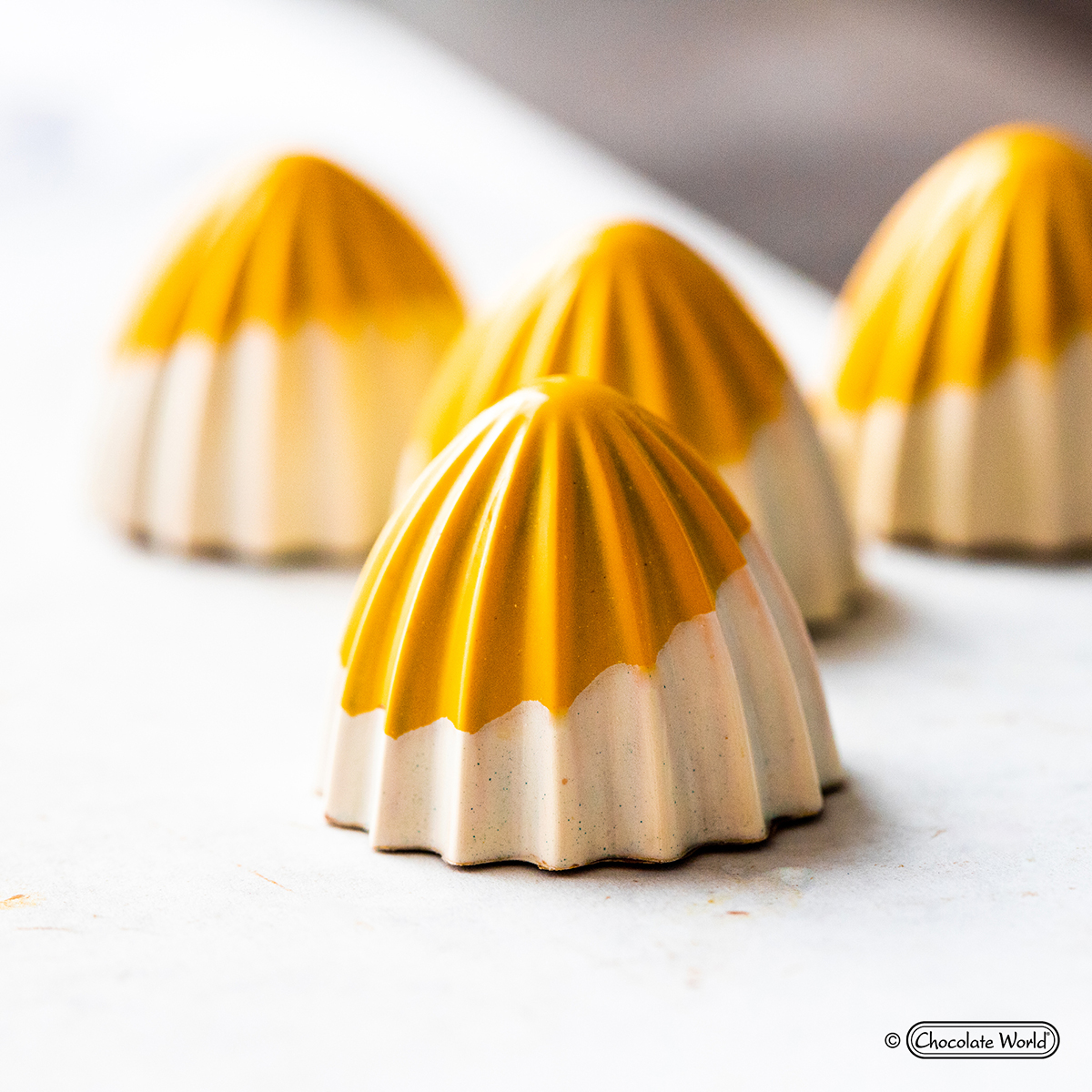 Polycarbonatform für die Herstellung perfekter Schokoladentrüffel. Diese hochwertige europäische Form ist einfach zu verwenden, Ihre Schokolade hat eine glänzende Oberfläche und hebt sich leicht ab. Um bunte Schokoladenstücke zu erhalten, bestreichen Sie die Form mit einer dünnen Schicht gefärbter Kakaobutter, bevor Sie die Form mit Schokolade füllen. Das Design dieser Form ermöglicht es Ihnen, perfekte Formen mit sanft verlaufenden Linien zu formen.