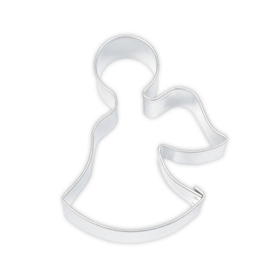 Glatter Ausstecher aus Weißblech in Form eines Engels.