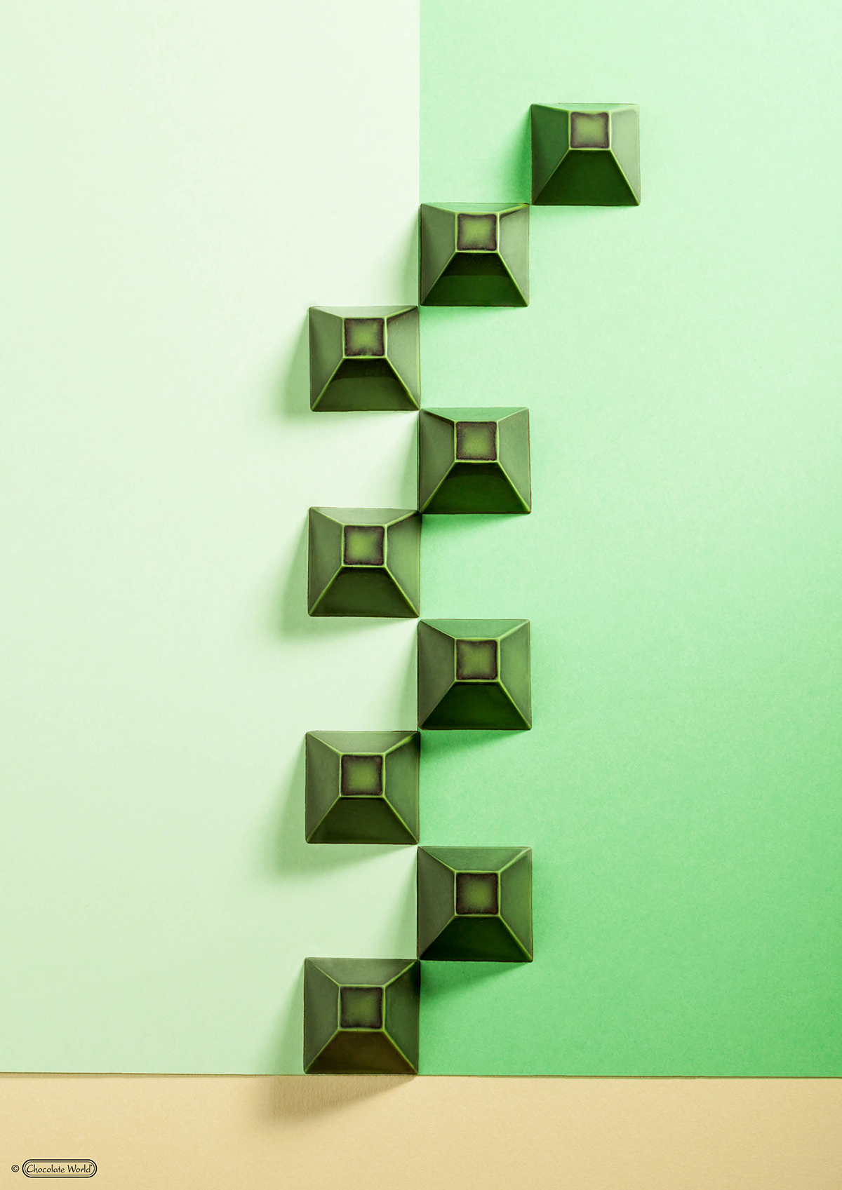 Polycarbonatform für Pralinen in Pyramidenform. Abmessungen 27 x 27 x 17 mm.