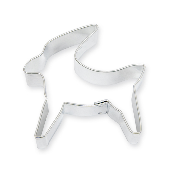 Lebkuchenausstecher in Form eines Rentiers. Die praktische und einfache Ausstechform ist aus Weißblech gefertigt. Es ist sehr einfach, eine Rentierform herzustellen.
