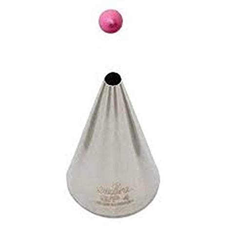 Metall-Dekorierspitze rund #4, mit der Sie präzise und einzigartige Dekorationen erstellen können. Die Spitze kann wiederholt mit dem Dekorationsbeutel verwendet werden. Sie ist aus rostfreiem Stahl gefertigt, es bleiben keine Fettflecken auf der Oberfläche. Nicht spülmaschinenfest.