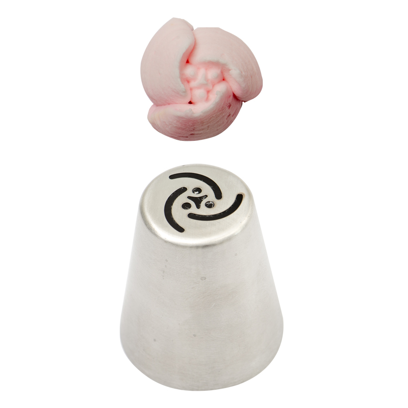 Metall-Patisserie-Verzier-Spitze russisch 36 für genaue und einzigartige Verzierung feiner Blümchen. Die Spitze können Sie mehrfach mit der Decorating-Tülle verwenden. Sie ist aus Edelstahl gefertigt, Fettflecken bleiben auf der Oberfläche nicht zurück. Nicht geeignet für die Spülmaschine.