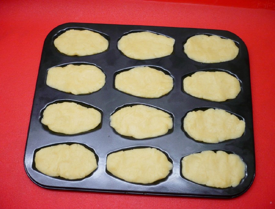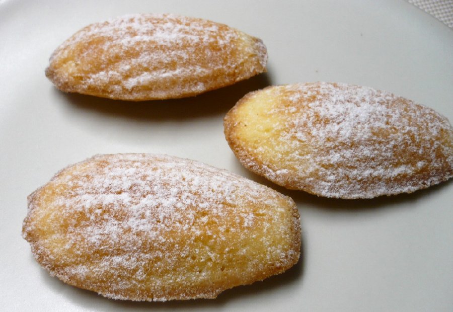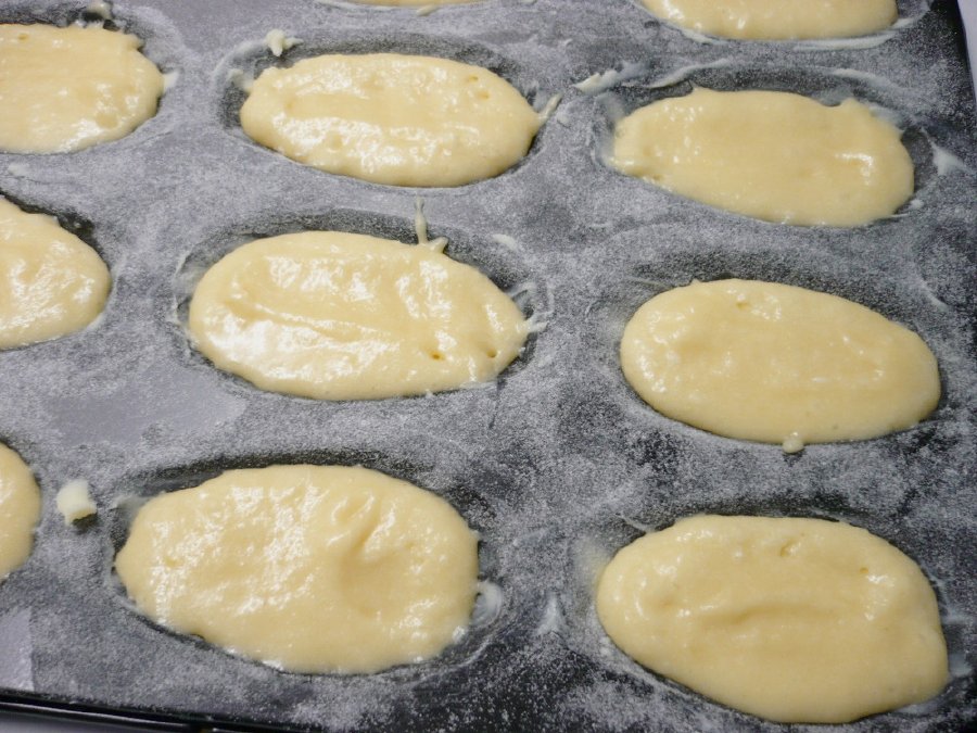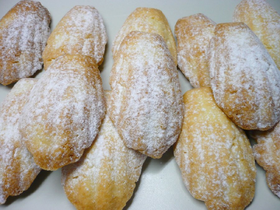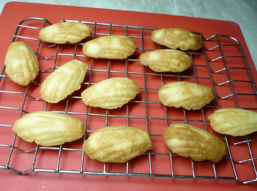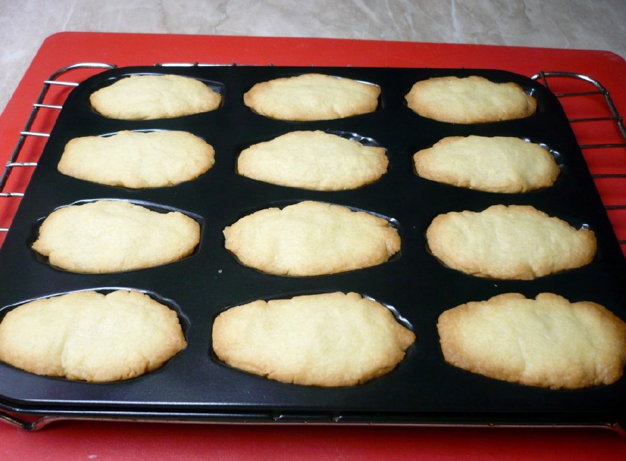 Die gebackenen Madeleines fallen nach dem Wenden der Form leicht heraus, werden nach dem Abkühlen auf einem Drahtgitter leicht gezuckert und entweder sofort serviert oder in ein Glas mit dicht schließendem Deckel gegeben. Madeleines sind ein typisch französisches Süßgebäck. Ihre Form ähnelt einer Meeresmuschel. Für das Gebäck wird eine geeignete Form benötigt, die Form ist ähnlich wie bei unserem Gebäck, nur etwas länglicher. Es handelt sich um ein zum Kaffee oder Tee geeignetes Gebäck, das aus einem leichten Biskuitteig hergestellt wird und eine pralle Form haben sollte.