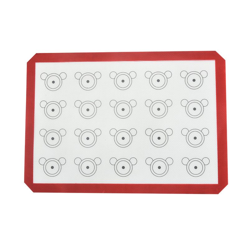 Antihaft-Backmatte für Makronen. Die Teigmatte ist mit Kreisen markiert, damit Sie jedes Mal die richtige Menge des Teigs für gleichmäßige Makronenportionen auftragen können. Der kleine Kreis zeigt an, wo die Tülle der Tube platziert werden muss - füllen Sie die Schablone einfach mit der Mischung, bis sie den Rand des großen Kreises erreicht. Die Schablone eignet sich auch hervorragend für die Herstellung von festen Meringues oder sogar riesigen Schokoladenknöpfen. Die antihaftbeschichtete Makro-Backmatte ist sehr dünn und flexibel, aber auch sehr haltbar.