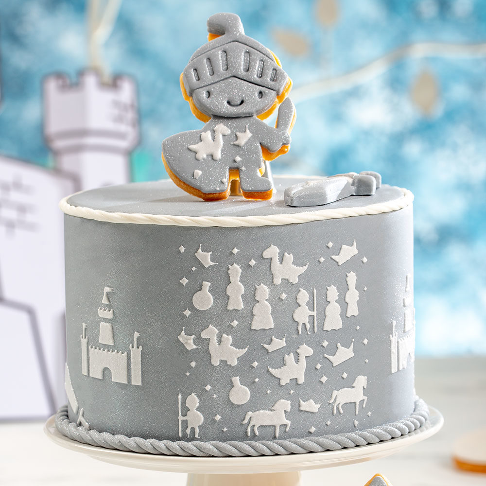 Überraschen Sie Ihre Lieben, indem Sie wunderschöne Kekse oder Tortendekorationen mit Rittermotiven kreieren. Diese schöne Schablone eignet sich perfekt für die Dekoration von Keksen oder sogar einer Torte, z. B. mit Royal Icing oder Puderzucker. Enthält: 1 Lebensmittelschablone aus Kunststoff 25 x10 cm.