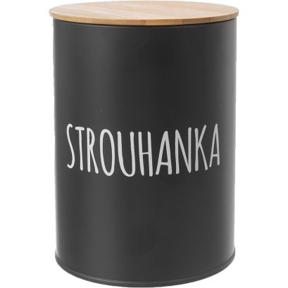 Die weiße Aufschrift STROUHANKA verrät sofort, um welchen Inhalt es sich handelt - besonders beliebt bei Liebhabern von Frittiertem und dem klassischen dreifachen Paniermehl von trockenen Brötchen oder gemahlenen Cornflakes.Der Deckel ist aus Bambusholz und sorgt mit seiner Silikondichtung dafür, dass der Inhalt nicht ausläuft, wo er nicht hin soll.