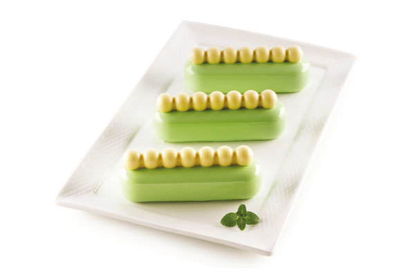 Mit dieser klassischen Form von Silikomart können Sie schicke Eclair-Kuchen zubereiten. Sie können aber auch verschiedene Kuchen, Desserts, Eiscreme und vieles mehr damit zubereiten. Die Form von Silikomart ist backofen-, kühlschrank-, gefrier- und spülmaschinenfest und hält Temperaturen von -60°C bis +230°C stand. Sie können 6 Desserts in einer Form herstellen.