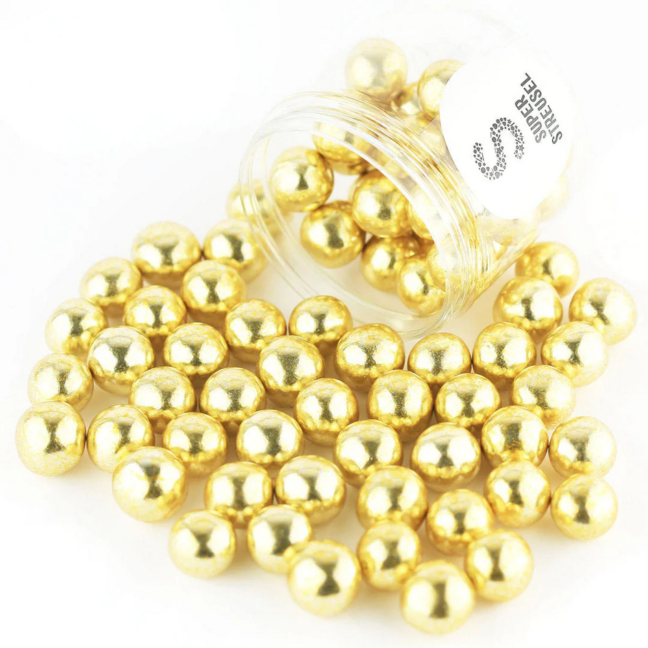 Für alle, die knusprige Stückchen mögen, sind diese ultimativen Superstreusel geeignet. Prall, groß, rund, außen golden und innen super knusprig! Unsere XL-Knusperkugeln haben einen super leckeren knusprigen Kern, der mit feiner Schokolade überzogen ist. Jede Kugel ist 2x so groß wie die Kugeln in den Mischungen. Sie eignen sich hervorragend zum Verzieren von Cupcakes. In der Packung sind ca. 50 Perlen enthalten.