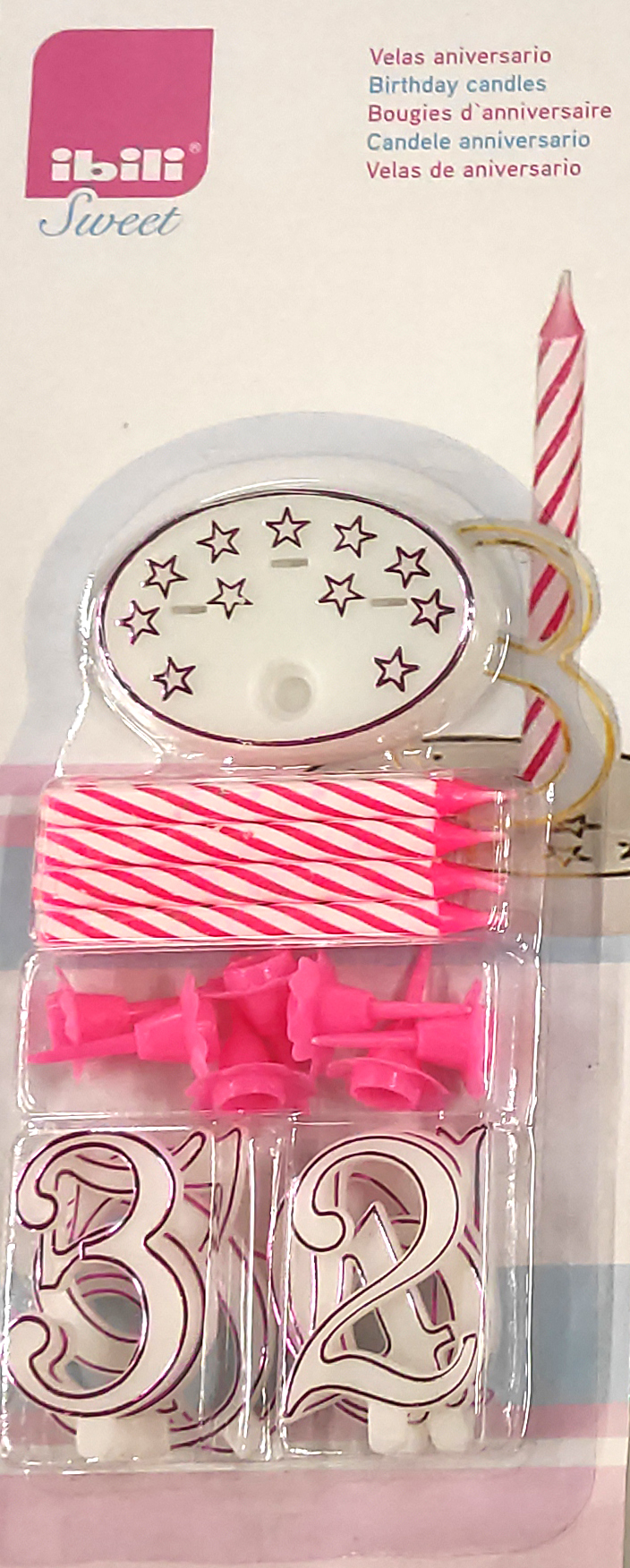 Set von Geburtstagskerzen 7cm 8pcs Kerzen und Zahlen - rosa