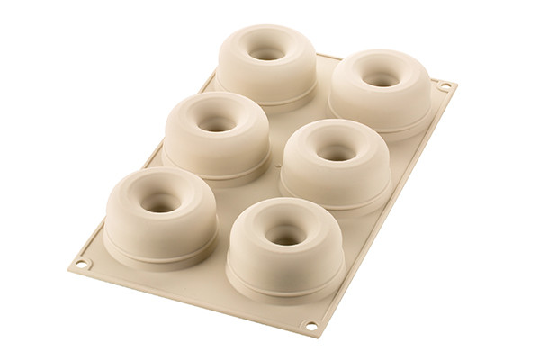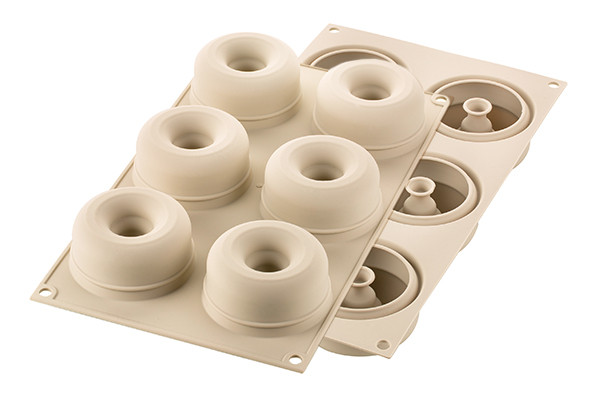 Winziger Schmuck mit klassischen und doch modernen Linien. MINI ARENA aus dem 3D-Silikomart-Sortiment ist eine äußerst vielseitige Form, eine originelle Neuinterpretation der traditionellen Donut-Form, die eine Explosion von Farben, Geschmacksrichtungen und Texturen ermöglicht. Die Hohlräume der Mini Arena Silikonform sind mit einem speziellen Innenrand versehen, der dem Boden Ihrer Desserts eine leicht abgerundete Form verleiht. Die Mini Arena garantiert perfekte Ergebnisse nicht nur bei Halbgefrorenem und Mousse, sondern auch bei einer Vielzahl von Konditoreiprodukten. Die Silikonform hat eine antihaftbeschichtete Oberfläche, die das Kippen des fertigen Produkts erleichtert. Sie ist kompakt und spülmaschinenfest. Sie kann für gefrorene, gekühlte und in der Mikrowelle zubereitete Desserts verwendet werden. Volumen 600 ml, Abmessungen 183mm x 338mm x 36mm, Ø70.