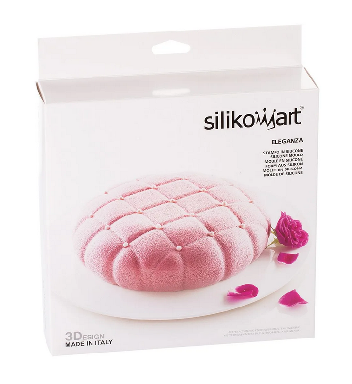 Wählen Sie für Ihre besonderen Anlässe Eleganza: ein geschmackvolles Schmuckkästchen mit einem zarten gesteppten Schuss, perfekt für die Herstellung echter 3D-Kreationen, die Ihre Gäste zum Staunen bringen werden! Die Form verfügt über eine revolutionäre Innenkante, die der Basis Ihrer Vorrichtungen eine leicht abgerundete Form verleiht. Die Silikomart-Form zeichnet sich durch ihre extreme Vielseitigkeit aus: Sie kann im Ofen, im Kühlschrank und in der Tiefkühltruhe verwendet werden und hält Temperaturen von -60°C bis +230°C stand. Dank der Elastizität und Flexibilität des Materials lässt sich die Form auch leicht zusammenfalten und nimmt so nur wenig Platz ein. Silikomart ist spülmaschinenfest und garantiert für den häufigen Gebrauch. Es ist eine gelungene Kombination aus Funktionalität, Design und Qualität. Gebrauchsanweisung: Sie brauchen keine Butter oder andere Fette, um die Form zu fetten.