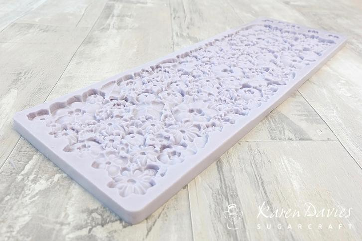 Silikonform zum Herstellen von floralen Ornamenten aus Marzipan oder Fondant auf Torten.