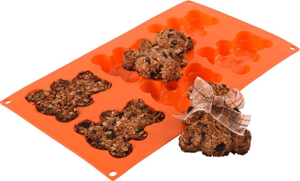 Form zum Backen wird Ihnen helfen, Plätzchen zu formen, mit denen Sie Kinder frühzeitig erfreuen. Sie können sie aus Piškotové/gebäckteig backen, mit Schokolade, Marmelade füllen, mit Zuckerguss verzieren, Sie können darin Fruchtpüree einfrieren... In der Form bereiten Sie 6 Bären vor. Die Form ist leicht, stabil, antihaftbeschichtet, der Teig klebt nicht fest, nimmt keine Gerüche von Lebensmitteln auf, ist hitzebeständig von -40 °C bis +220 °C. Leicht zu pflegen, spülmaschinenfest. Die Form ist geeignet für Gas-, Elektro- und Heißluftbacköfen, Kühlschrank und Gefriertruhe. Material: Silikon Formmaß: 31 x 18 x 2 cm Bärchenmaß: 8,5 x 7 cm