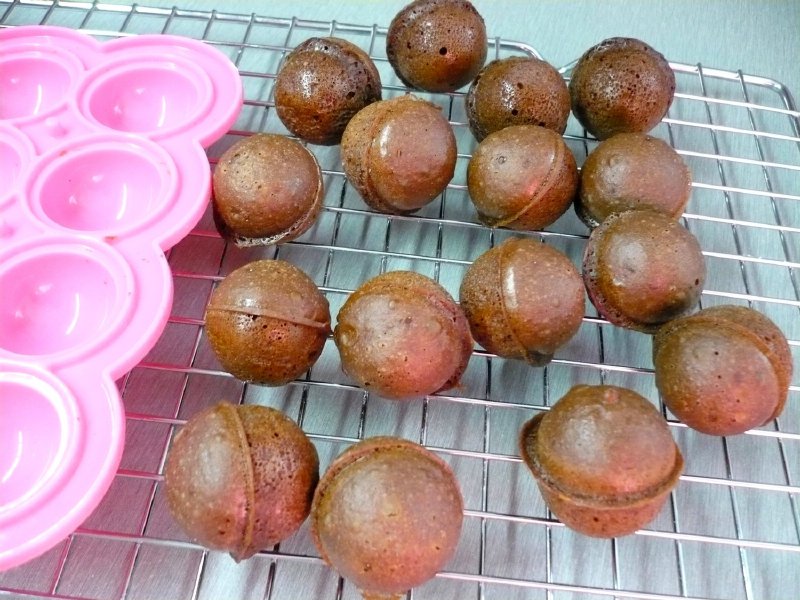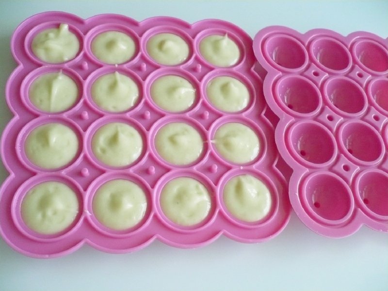 In dieser Form können Sie ganz einfach ein sehr originelles Dessert backen. Sie gießen den Teig in einen Teil der Form und bedecken den anderen Teil der Form. Sie backen sechzehn Kugeln, in die Sie einfach die Spieße durch die praktischen Löcher in der Form stecken. Sie können die Lutscher mit Zuckerguss und Streuseln verzieren.