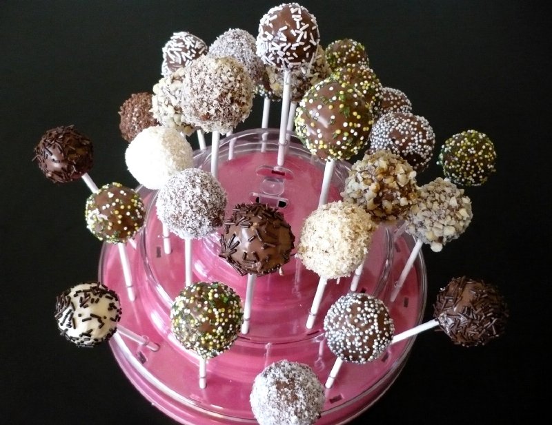 Cake Pops - gebackene Lutscher sind vor allem in England und Amerika sehr beliebt. Sie sind eine kleine Süßigkeit für verschiedene Anlässe, vor allem für Feiern. Es gibt sie in vielen Variationen, je nach Verwendungszweck. Sie haben verschiedene Namen, wie z. B. mit Schokolade überzogene Kuchenbälle, Tortenbälle oder Lollipop-Kuchen. Heutzutage sind sie in unserem Land sehr beliebt und gefragt. Sie werden zu festlichen Anlässen schön dekoriert und dienen als Tischdekoration bei verschiedenen Feiern. Kinder sind wahrscheinlich am meisten davon begeistert. Wenn man sie selbst backen möchte, braucht man nur eine Form und Stäbchen zum Aufspießen. Diese sind in der Packung enthalten, können aber auch separat gekauft werden. So kann jeder einen Vorrat für die Zukunft haben. Ich empfehle auch den Ständer, der speziell für diesen Zweck konzipiert ist. Er kann sowohl für Cake Pops als auch für verschiedene Lollipops verwendet werden. Die Form besteht aus solidem 100%igem Platinsilikon, sie ist formstabil und dennoch flexibel. Sie ist sehr einfach zu benutzen und zu pflegen und spülmaschinenfest. Die Form misst 16,5 cm x 16,5 cm. Sie ist temperaturbeständig von - 60°C bis + 230°C und kann sowohl im herkömmlichen Ofen als auch in der Mikrowelle verwendet werden. Sie besteht aus zwei Teilen, wobei der untere Teil zum Einfüllen des Teigs dient und der obere Teil mit Löchern für den Dampfabzug versehen ist. Vor dem Befüllen ist es ratsam, beide Teile leicht mit Öl zu fetten und leicht mit halbgarem Mehl zu bestäuben. Der Teig lässt sich sehr gut mit einem Spritzbeutel mit glatter Metallspitze füllen. Der Teig wird mit Backpulver zubereitet, vorzugsweise als Biskuit. Er kann kakaohaltig, nusshaltig, usw. sein. Die gefüllte Form wird mit dem Deckel abgedeckt und in den auf etwa 170 °C vorgeheizten Backofen gestellt und etwa 20 Minuten gebacken. Nach dem teilweisen Auskühlen in der Form werden die Kuchen herausgenommen und auf einem Gitterrost abkühlen gelassen. Die Riegel werden dann in die Kuchen gedrückt, deren Enden in geschmolzene Schokolade getaucht werden. So bleiben sie gut haften und verdrehen sich nicht. Nachdem die Törtchen fest geworden sind, können Sie sie nach Ihren Vorstellungen verzieren. Meistens werden es wohl verschiedene Arten von Kuvertüre mit einigen Süßigkeitenstreuseln sein. Sie können auch Kokosnuss, geriebene Mandeln, Nüsse usw. verwenden. Die fertigen Cake Pops lassen Sie gut aushärten und können direkt in die Löcher der gefalteten Form gesetzt werden. Ich bin damit zufrieden und kann es daher empfehlen. M. F.