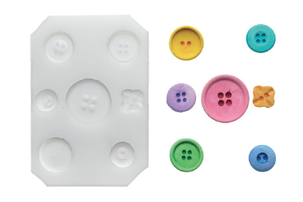 Mit der Form können Sie zehn detaillierte Knöpfe auf einmal ausstanzen. Die Silikonform ist flexibel, hat eine antihaftbeschichtete Oberfläche und das Material lässt sich sehr leicht ablösen. Sie kann für Fondant, Maripan und andere Süßwarenmassen verwendet werden. Die Form kann in der Spülmaschine gereinigt werden.