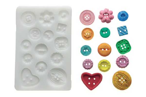 Silikonform für 17 Knöpfe aus Marzipan und Fondant.