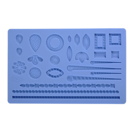 Mit der flexiblen Silikon-Form für Schmuckstücke lassen sich spielend dekorative Akzente gestalten. Diese Wilton-Form enthält verschiedene Figuren, sodass Sie Ihre ganze Torte verzieren können. Da diese Form flexibel ist, können die fertigen Elemente leicht herausgenommen werden. Geeignet für Fondant, Marzipan und Gum Paste. Ideal zum Verzieren von Kuchen, Torten, Keksen und mehr. Größe der Form: ca. 19,7 x 12,5 cm.
