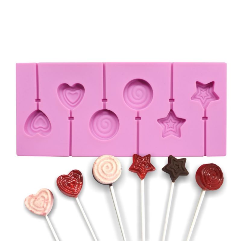 Silikonform für Lutscher in Stern-, Kreis- und Herzform.